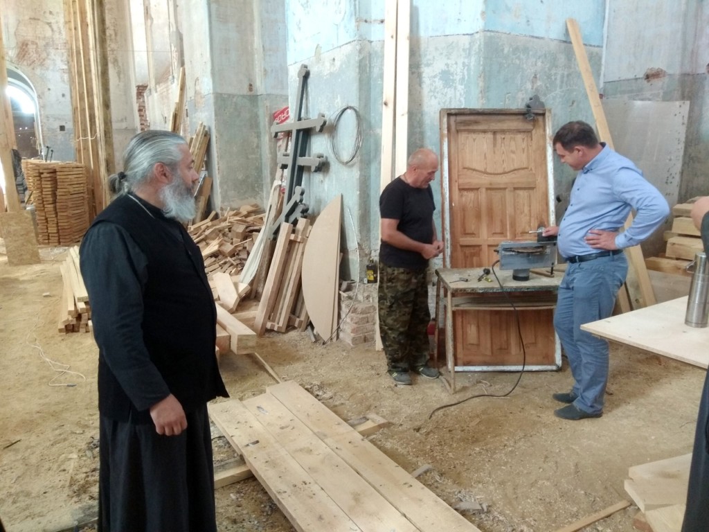 Совместно с главным ктитором и настоятелем прихода протоиереем Николаем Пырковым Владыка Иоанн обсудил дальнейший ход реставрации. Тем более, что в ближайшее время планируется монтаж кровельной системы трапезной части храма.