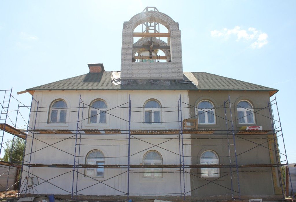Продолжаются работы по строительству нового здания церковной лавки и колокольни храма преподобного Серафима Саровского в г. Волжском.