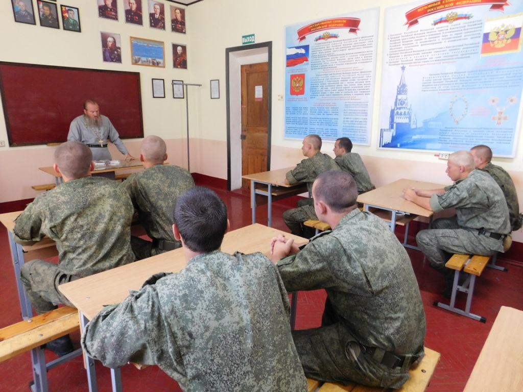 В ходе беседы с военнослужащими срочной службы священник ответил на интересующие вопросы, а также подарил всем солдатские молитвословы и нательные крестики.