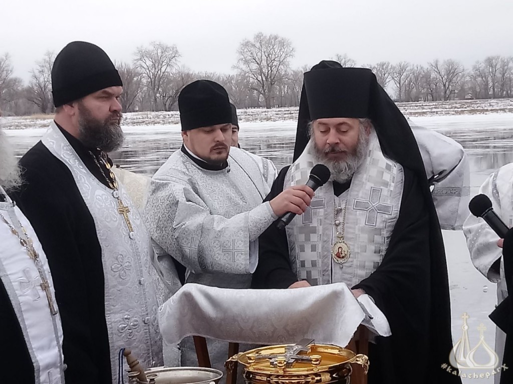 Чин Великого освящения воды возглавил епископ Калачевский и Палласовский Иоанн. По окончании молебна Владыка окропил верующих святой водой.