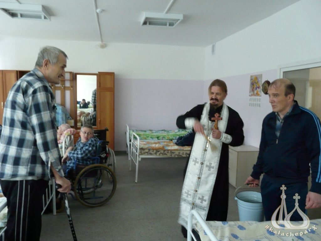 19 января 2019 г. настоятель храма Всемилостивого Спаса г. Суровикино (Калачевское благочиние) иерей Алексий Шумков посетил ГБССУ СО «Суровикинский психоневрологический интернат», где совершил молебен чином Великого освящения воды. На молебен собрались персонал учреждения и пациенты. Священник окропил всех святой водой, а затем были окроплены крещенской водой все помещения жилого и административного корпусов. По окончании была проведена беседа.