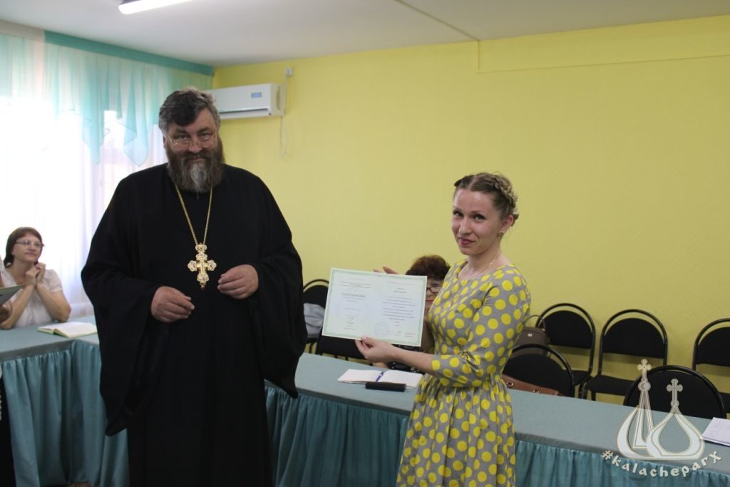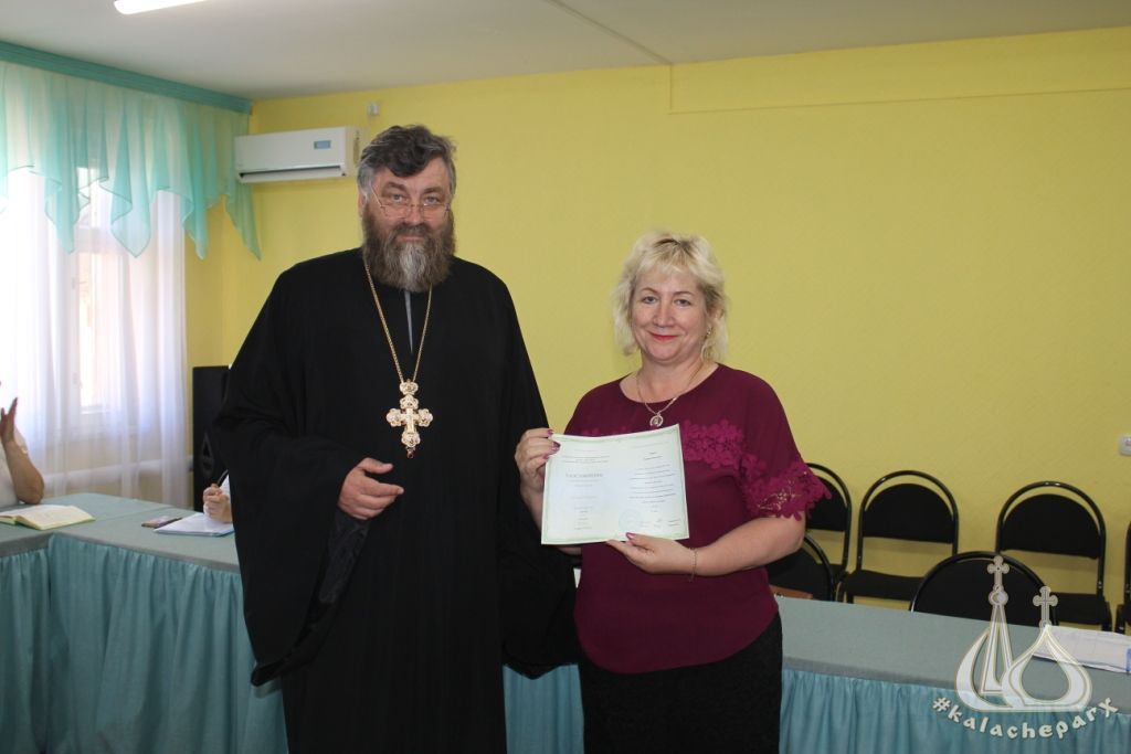 31 мая 2018 г. в Светлоярском МКУ «Центр социальной и досуговой помощи молодежи «ЭЛЕКТРОНИК» состоялось вручение свидетельств об окончании курсовой подготовки по Основам православной культуры педагогам общеобразовательных школ Светлоярского муниципального района. Свидетельства вручил руководитель епархиального отдела религиозного образования и катехизации протоиерей Петр Симора.