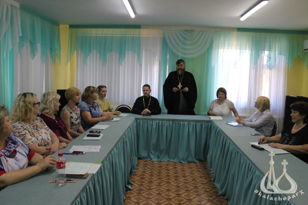 В ответном слове Светлана Викторовна выразила благодарность епархиальному отделу и Волжскому муниципальному институту экономики, педагогики и права за организацию курсовой подготовки для учителей ОПК. В предстоящем 2019/2020 учебном году по итогам выбора модулей курса ОРКСЭ изучать ОПК будут 276 учеников начальной школы, что составляет 61% от общего количества учащихся 4 классов. По завершении торжественной части гости посетили Светлоярскую среднюю школу №1, познакомились с новым директором школы Ляпуновой Еленой Михайловной, пообщались с педагогами и детьми пришкольного лагеря.