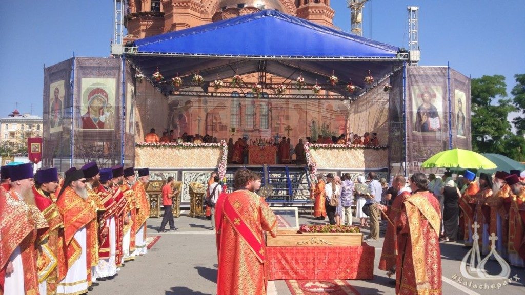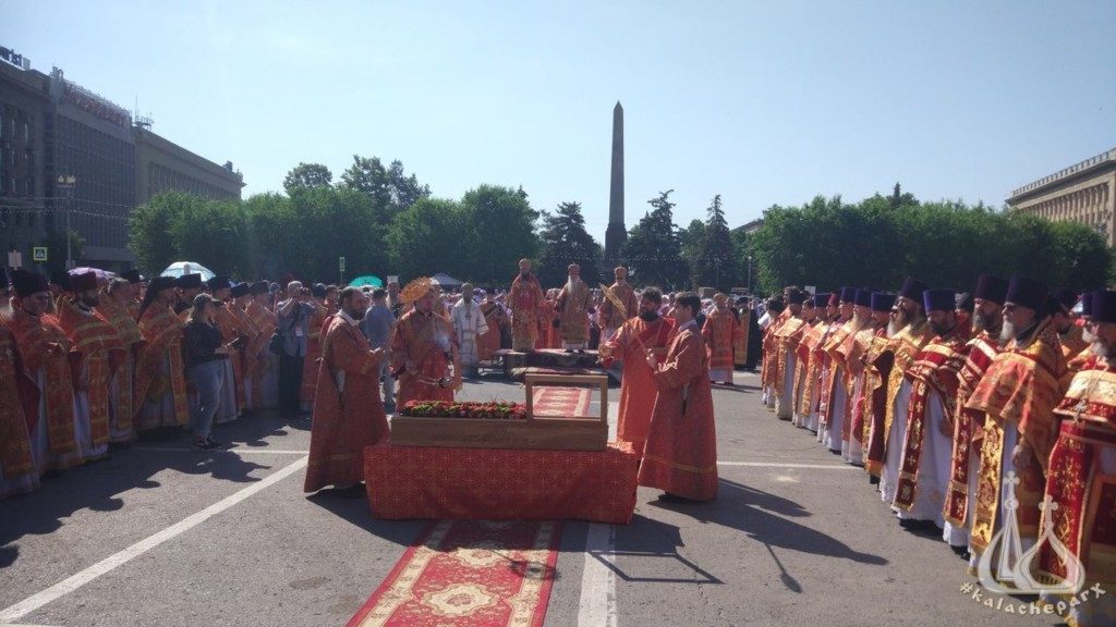 По сообщению пресс-службы волгоградской епархии, вместе с архипастырями и духовенством митрополии молились игумении женских обителей. На площади также присутствовали представители власти, представители казачьих обществ, православных молодежных объединений, верующие всех приходов Волгоградской митрополии. Причастие совершалось из десяти чаш.