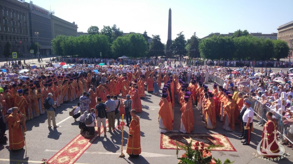 По сообщению пресс-службы волгоградской епархии, вместе с архипастырями и духовенством митрополии молились игумении женских обителей. На площади также присутствовали представители власти, представители казачьих обществ, православных молодежных объединений, верующие всех приходов Волгоградской митрополии. Причастие совершалось из десяти чаш.