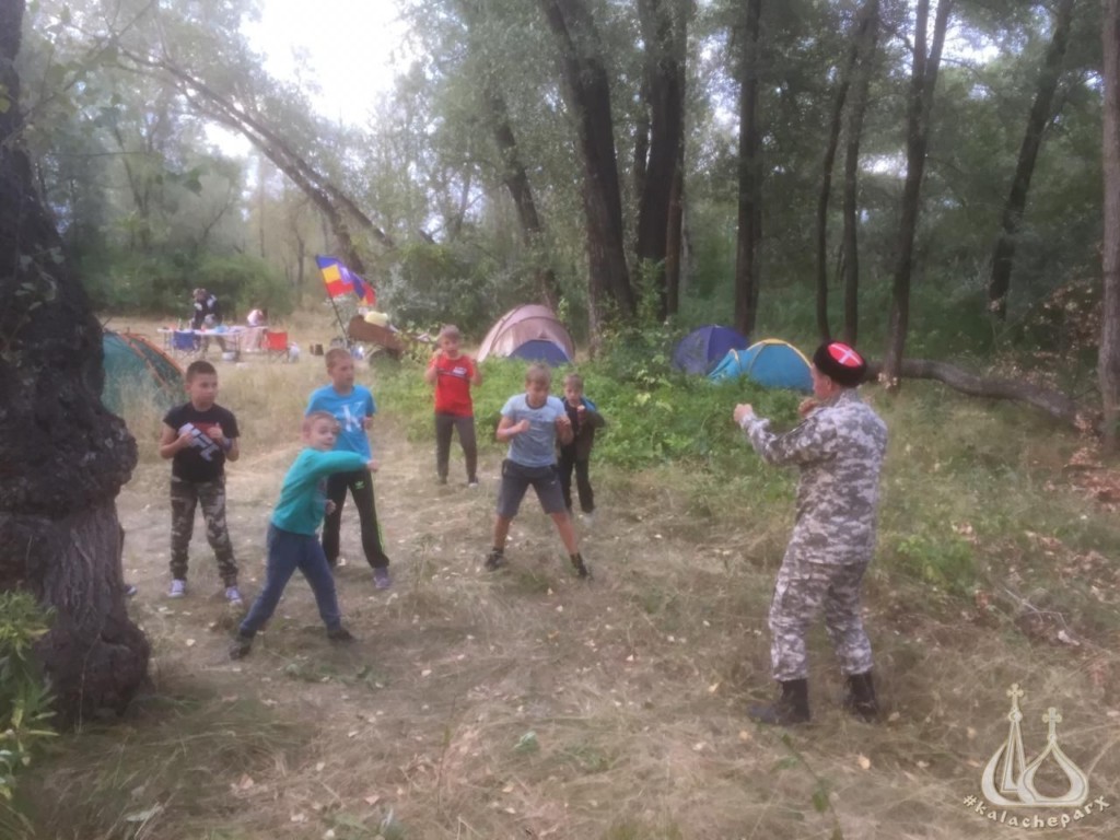 Утром и вечером тренеры и инструкторы проводили с детьми тренировки по казачьему рукопашному бою, занятия по разборке и сборке АК47, занятия по стрельбе из пневматического ружья и лука, занятия по метанию спортивных ножей.