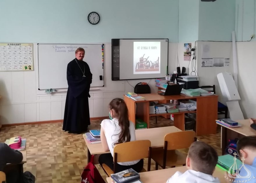 25 марта иерей Алексий Шумков встретился со школьниками. С учащимися школы № 3 священник говорил на тему «Доброта — это солнце». Батюшка рассказал школьникам о Дне православной книги, а также поделился мыслями о роли чтения в процессе становления личности, познакомил со старопечатными образцами церковной литературы.