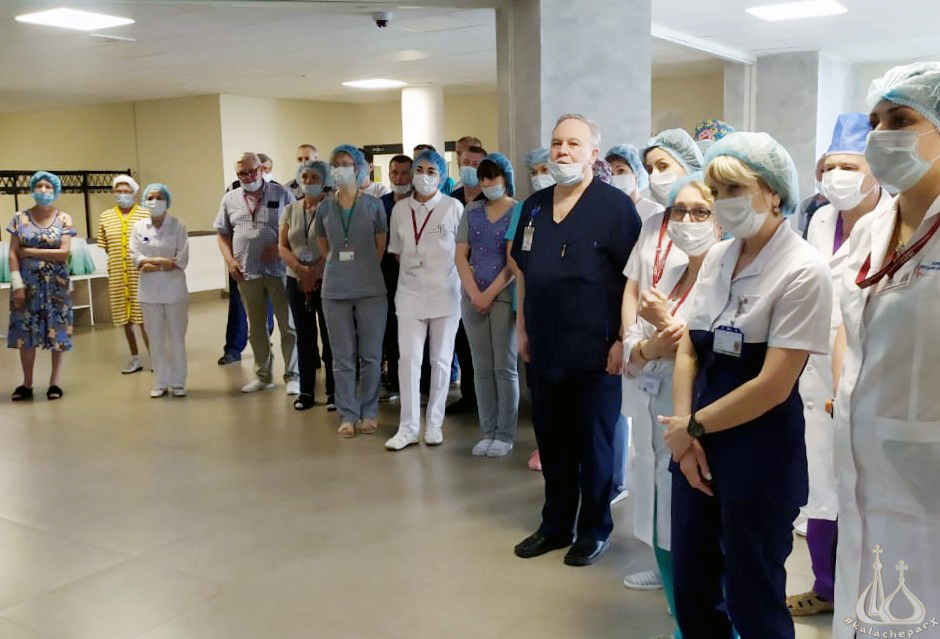 К общей молитве присоединились руководство учреждения, медицинские работники, пациенты.