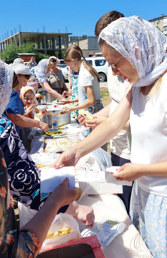 По окончании богослужения состоялся крестный ход вокруг храма, а также молебен с освящением медицинских халатов. Традиция окроплять медицинские халаты святой водой на престольный праздник храма Святителя Луки возникла несколько лет назад по благословению епископа Калачевского и Палласовского ИОАННА. Ежегодно в освящении принимают участие сотрудники медицинских учреждений города, а также студенты — будущие врачи и медсёстры.