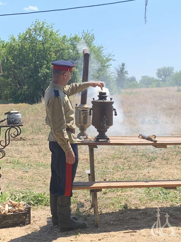 После праздничного богослужения и трапезы настоятель иеромонах Никита (Сергеев) и прихожане продолжили празднование в Центре военно-спортивной и конной подготовки «Щит» (хутор Закутский) весёлыми эстафетами на игровых площадках, народными песнями, конно-спортивными представлениями и чаепитием из дровяного самовара.