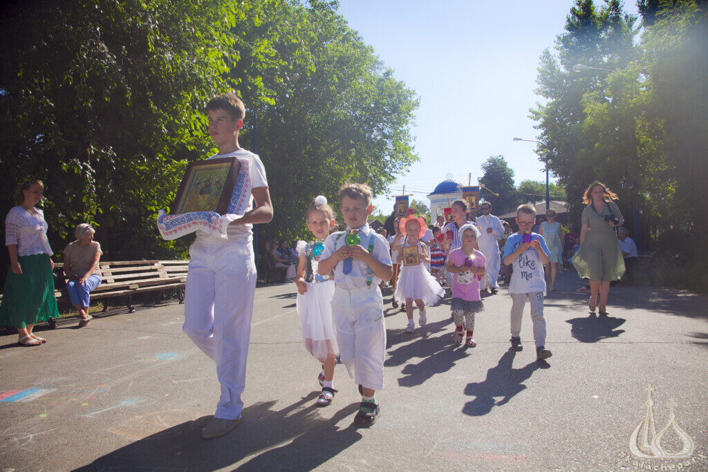 12 июня 2022 г., в праздник Святой Троицы, в Волжском состоялся детский крестный ход. С хоругвями и под песнопения в честь Пресвятой Троицы юные молитвенники прошли расстояние от храма Царственных Страстотерпцев (Дом милосердия) до городского парка «Гидростроитель». Участниками крестного хода стали воспитанники воскресных школ городских приходов, дети прихожан, верующие волжане. Впрочем, каждый желающий смог присоединиться к детской молитве. В Волжском это уже второй крестный ход с участием ребят. С инициативой организовать на Троицу шествие детей выступил Отдел по работе с обществом и СМИ Калачёвской епархии (руководитель: иерей Иоанн Стукалин). Впервые юные крестоходцы вышли на улицы города в прошлом году. Тогда необычное шествие привлекло внимание многих. Равно как и на этот раз. В этом году участников крестного хода сопровождали благочинный Волжского округа протоиерей Александр Копейкин, настоятель храма Царственных Страстотерпцев протоиерей Виктор Ватейчкин, настоятель храма Святых новомучеников иерей Иоанн Стукалин.