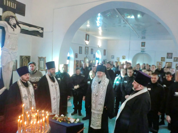 За богослужением молилось более 50 осужденных исправительного учреждения.