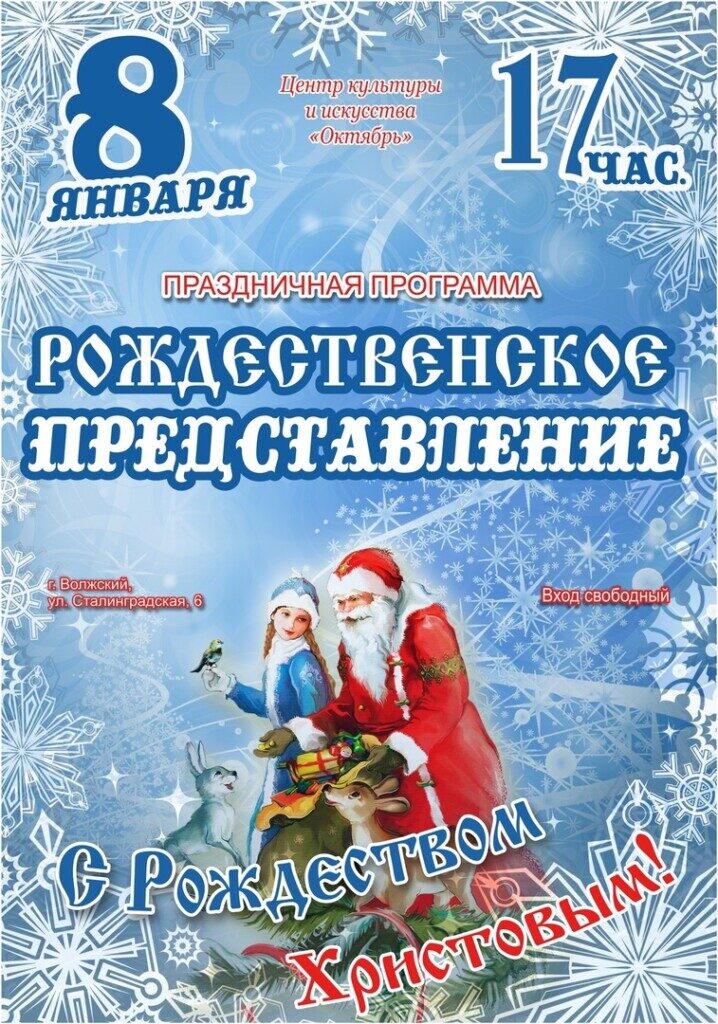 Приближается великий праздник — Рождество Господа нашего Иисуса Христа. Мы поздравляем вас с этим грядущим событием и приглашаем всех на праздничное Рождественское представление.
