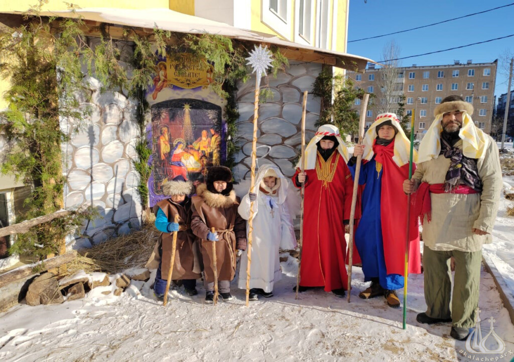8 января 2023 г. после Божественной литургии в храме Святых равноапостольных Константина и Елены в городе Волжском прошла Рождественская ёлка, на которой была показана сценка из спектакля о Рождестве Христовом.