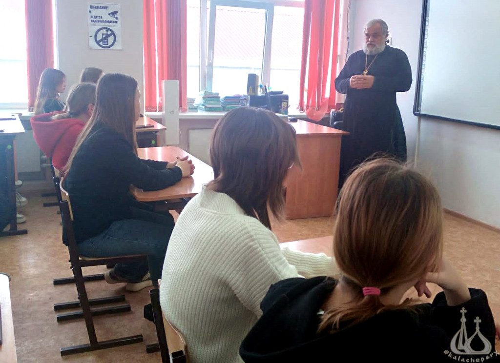 15 декабря 2023 года в МОУ «СШ № 3» г. Николаевска в рамках проведения урока «Разговор о важном» прошла встреча учеников 8-го класса с настоятелем храма Живоначальной Троицы г. Николаевска протоиереем Владимиром Гогалюком.