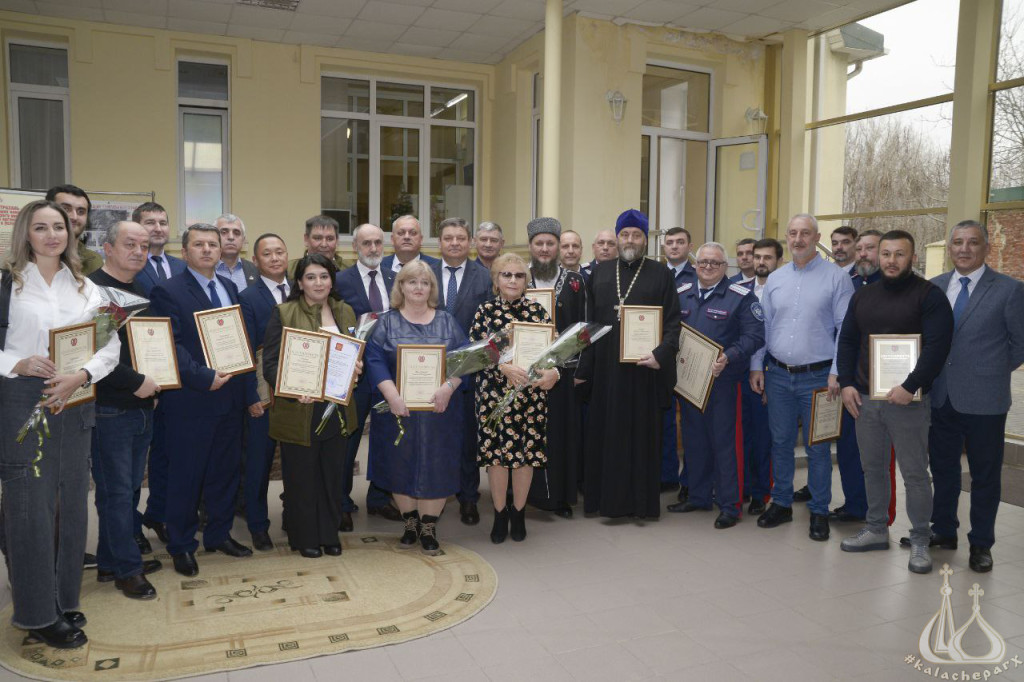 В числе награжденных благодарностью губернатора Волгоградской области были духовник ОКО «Волжский казачий округ», настоятель храма прп.Серафима Саровского протоиерей Петр Симора, член городского казачьего общества «Станица Вознесенская» Евгений Якушин и первый заместитель атамана городского казачьего общества «Станица Верховская» Андрей Иголкин.