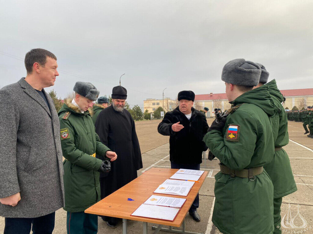 Почетным гостем на церемонии был благочинный Волжского округа протоиерей Александр Копейкин, который приветствовал молодых солдат, сказав, что важнейшими качествами русского воинства всегда являлись вера в Бога и любовь к своему Отечеству. А защита своей Родины есть священная обязанность каждого воина.