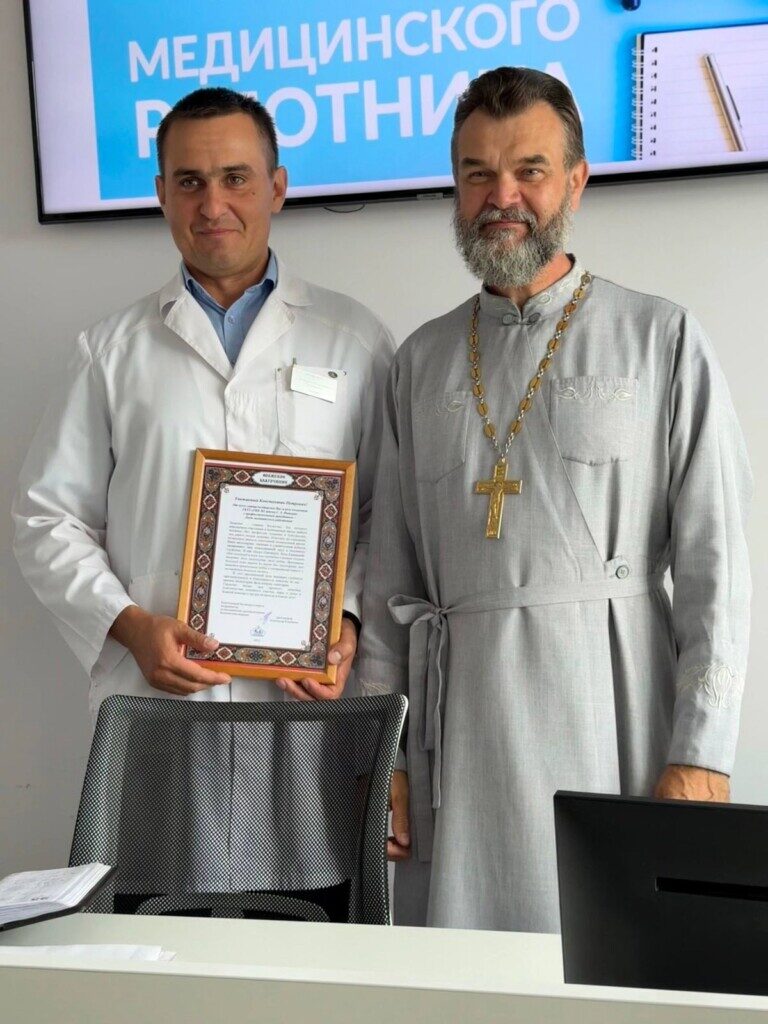 В день медицинского работника благочинный Волжского церковного округа, координатор по больничному душепопечению Калачевской епархии протоиерей Александр Копейкин поздравил руководство и сотрудников учреждений здравоохранения города с профессиональным праздником.