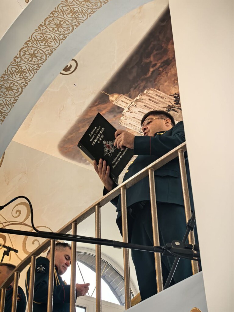 Во время торжественного богослужения звучал голос хора инженерных войск Вооруженных Сил Российской Федерации, создававший особую атмосферу духовного единения среди присутствующих.