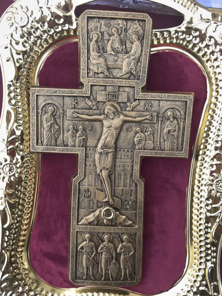 - Древний крест с частицей Древа Животворящего Креста Христова.
