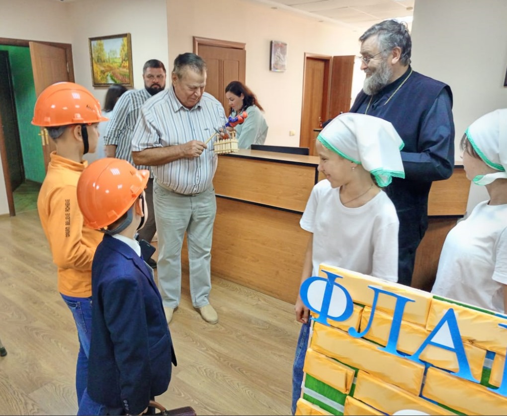 Отец Петр поблагодарил Василия Афанасьевича и коллектив за помощь, оказываемую приходу, и пожелал Божией помощи в трудах на благо родного города и волжан. Воспитанники воскресной школы приготовили для сотрудников «Флагмана» музыкальное поздравление и подарок, изготовленный своими руками.