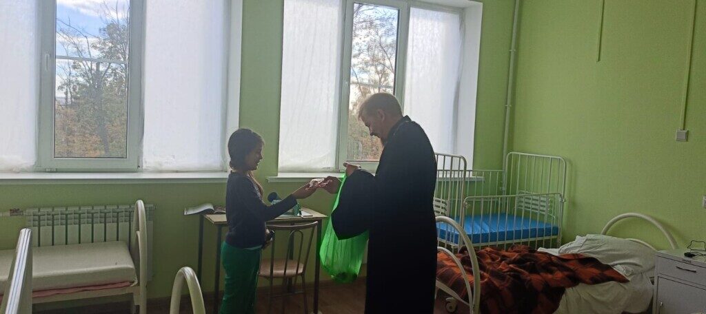 Визит начался с молебна в конференц-зале, где молитвы к Богородице звучали как просьба о Ее Покрове и заступничестве. Затем отец Алексий прошел по палатам, лично обращаясь к каждому пациенту и сотруднику больницы. Он сердечно поздравил всех с праздником, подарив им не только добрые слова, но и частичку той благодати, которую приносит с собой Покров Богородицы. Священник пожелал скорейшего исцеления, телесных и душевных сил, а также выразил благодарность медицинскому персоналу за их самоотверженное служение.