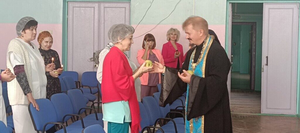 Визит начался с молебна в конференц-зале, где молитвы к Богородице звучали как просьба о Ее Покрове и заступничестве. Затем отец Алексий прошел по палатам, лично обращаясь к каждому пациенту и сотруднику больницы. Он сердечно поздравил всех с праздником, подарив им не только добрые слова, но и частичку той благодати, которую приносит с собой Покров Богородицы. Священник пожелал скорейшего исцеления, телесных и душевных сил, а также выразил благодарность медицинскому персоналу за их самоотверженное служение.