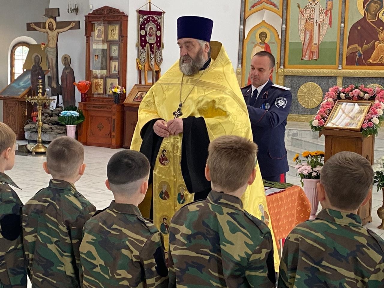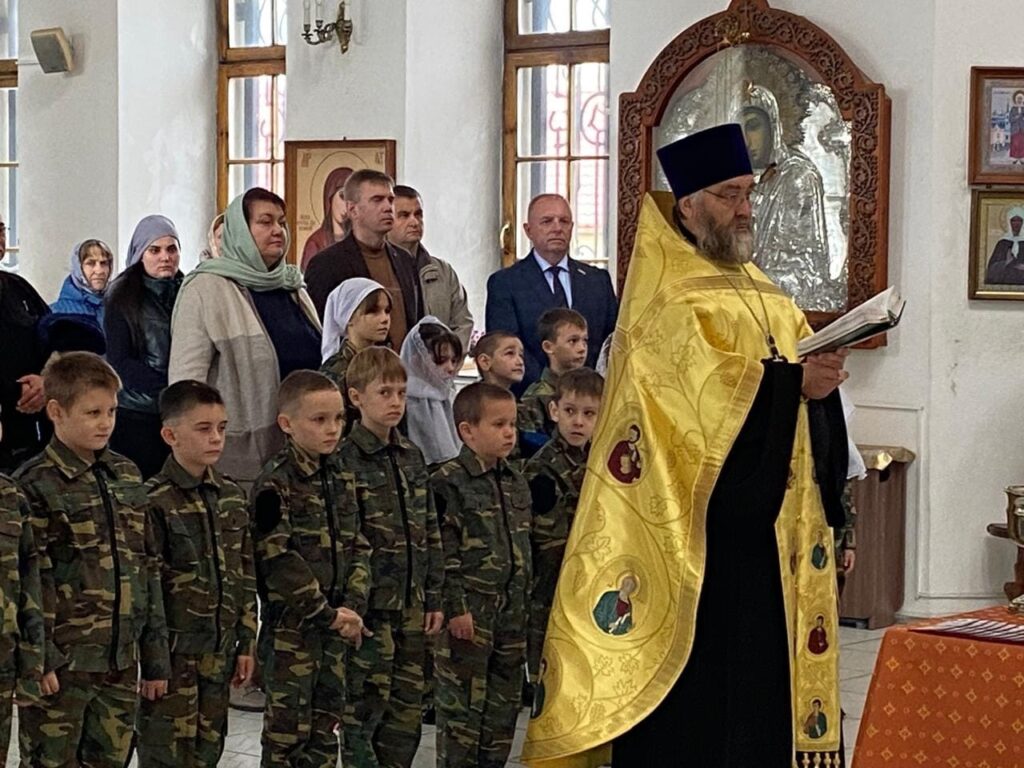 17 октября в соборном храме апостола Иоанна Богослова состоялась торжественная церемония посвящения в казаки учеников 1 «К» класса средней школы № 15 им. М.М. Расковой. По традиции мероприятие началось с молебна, который совершил духовник Волжского казачьего округа, настоятель храма прп.Серафима Саровского протоиерей Петр Симора. После молебна юным казакам были вручены удостоверения кадетов.