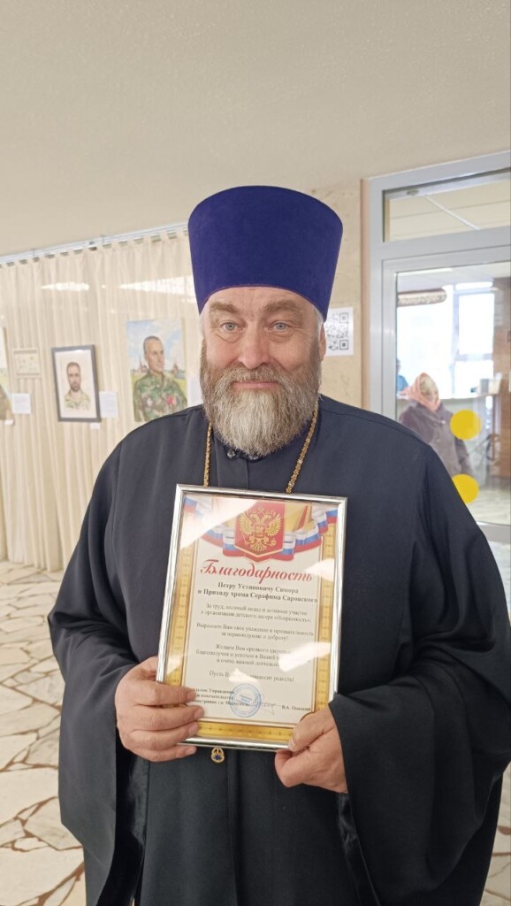 Особым моментом мероприятия стало вручение медалей и благодарственных писем. Глава города Игорь Воронин поблагодарил наших земляков за активную гражданскую позицию, неравнодушие, благородство и искреннее проявление патриотизма. Он также лично выразил признательность тем, кто оказывает помощь СВО. В числе награждённых был протоиерей Пётр Симора — ему была вручена заслуженная награда.