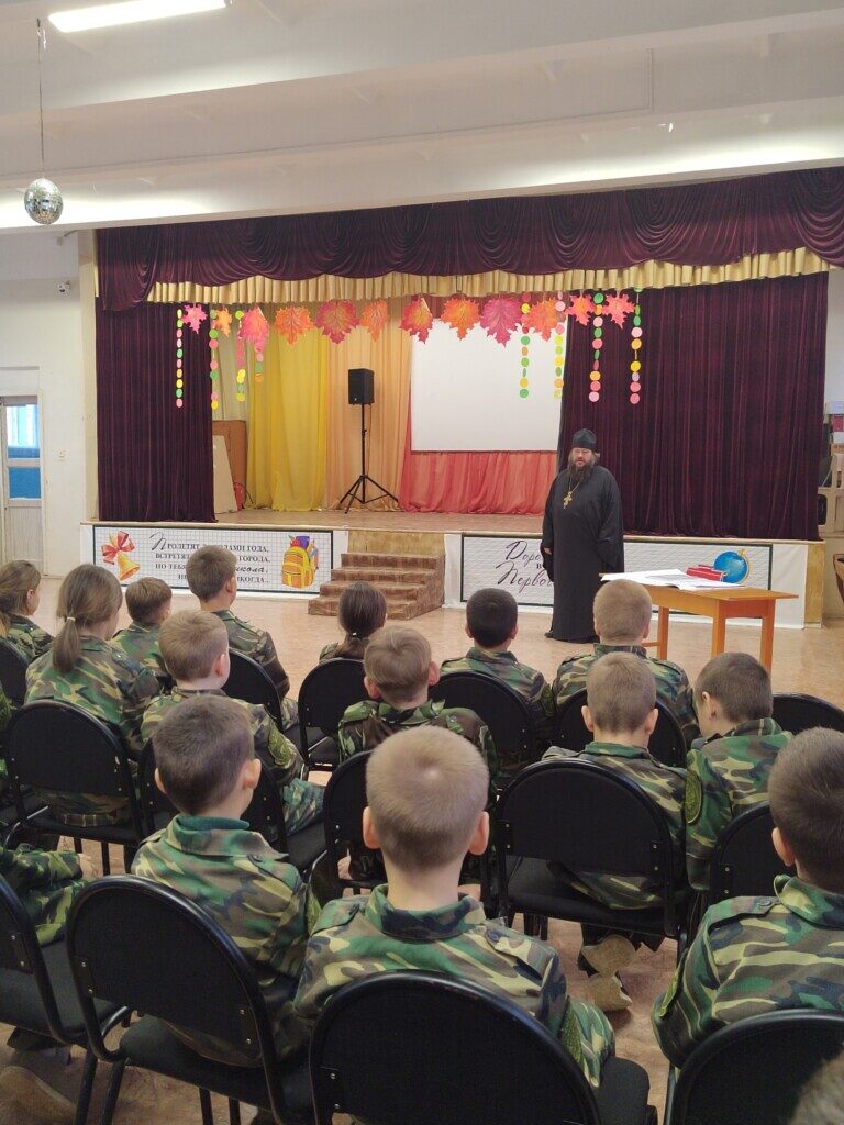 Руководитель отдела по работе с казачеством Калачевской епархии протоиерей Димитрий Старшинин в своим вступительном слове определил основные цели взаимодействия между церковью, школой и сохранением культурно-исторических традиций и духовно-нравственных ценностей казачества,.