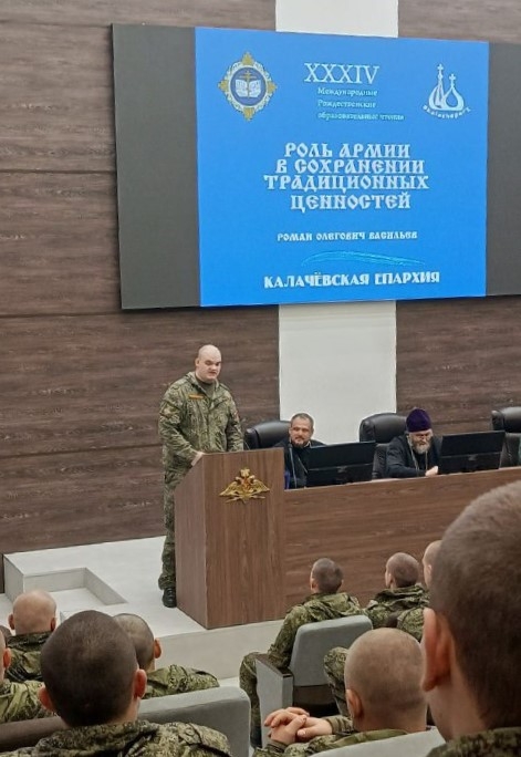 16 ноября 2025 г. в рамках Епархиального этапа Международных Рождественских чтений в конференц-зале войсковой части № 73420 в городе Волжском состоялась секция по взаимодействию с вооруженными силами. Тема круглого стола звучала: «Формирование личности в процессе прохождения срочной службы в рядах вооруженных сил». Организатором мероприятия выступил помощник командира войсковой части иерей Евгений Гордеев.