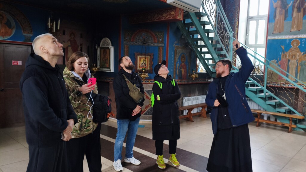 Третьей остановкой стал храм свт. Луки архиепископа Симферопольского. Священник Виталий Бабак провел экскурсию по храму и воскресной школе, рассказал историю становления прихода.