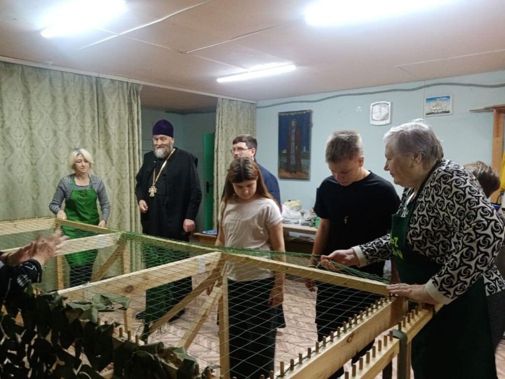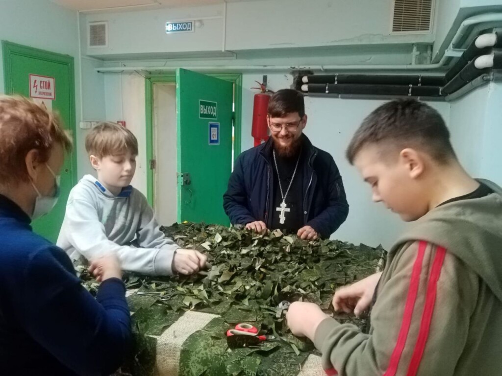 Вместе с волонтёрами ребята поучаствовали в плетении маскировочных сетей и создании снайперок, которые в дальнейшем отправятся к бойцам в зону СВО.