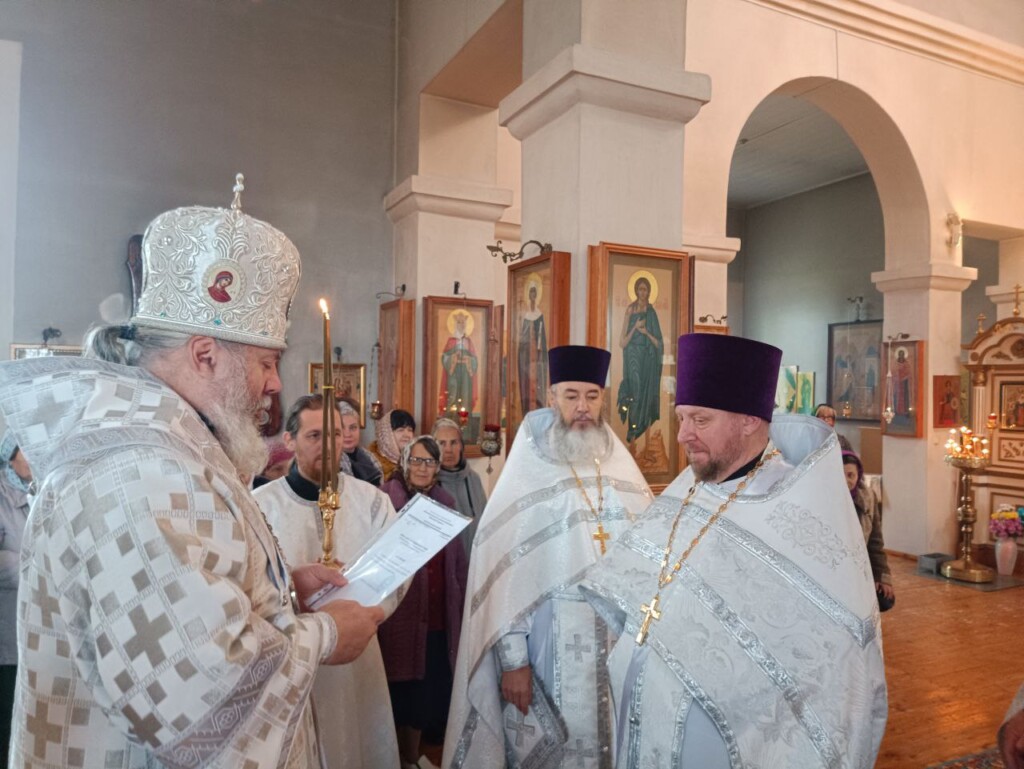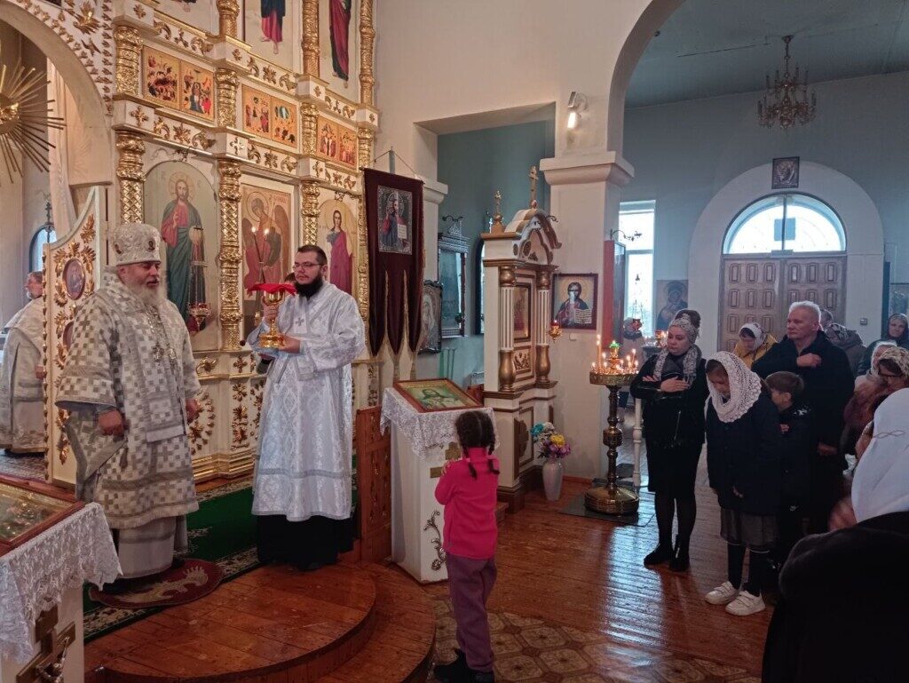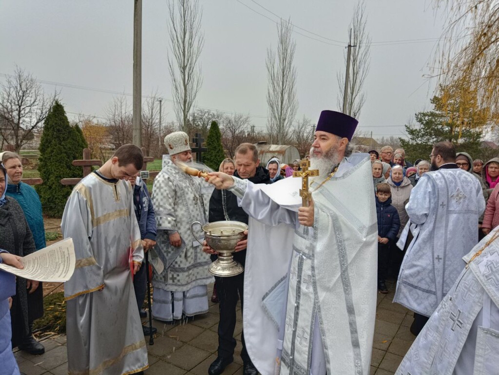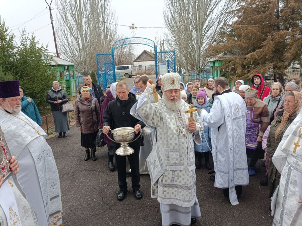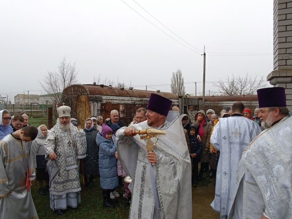 Преосвященному владыке сослужили благочинный Светлоярского церковного округа протоиерей Николай Голик, настоятель храма иерей Георгий Тарасенко, иерей Александр Тишин. диакон Владимир Кощеев.