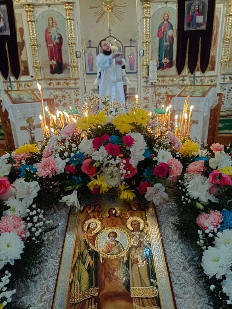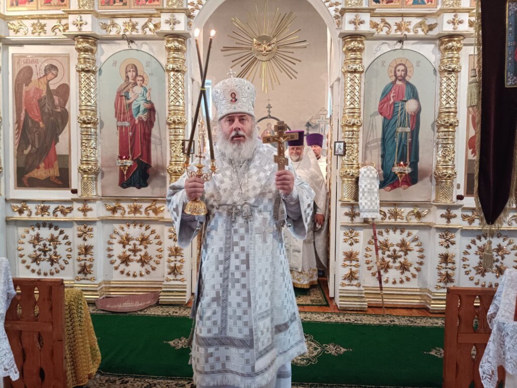 После Литургии, в честь престольного праздника, епископ Иоанн возглавил крестный ход вокруг храма и прочитал молитву Архангелу Михаилу.