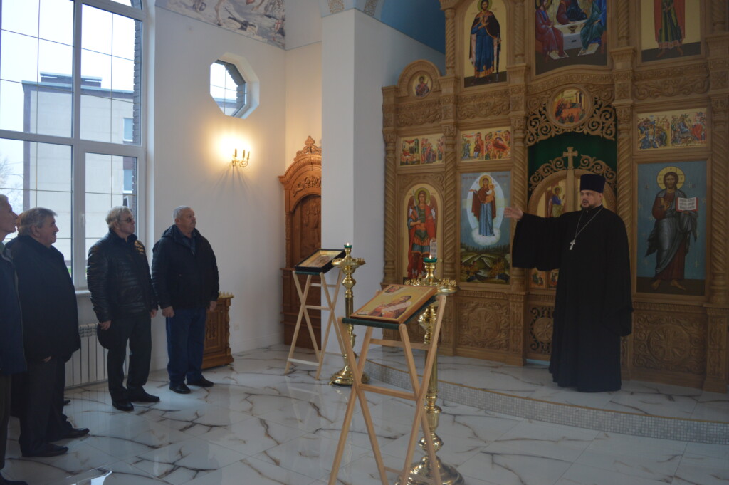 После официальной церемонии была организована экскурсия, которая началась с посещения храма, расположенного на территории войсковой части. Об этапах строительства церкви, святынях рассказал помощник командира части по духовным вопросам иерей Евгений Гордеев.