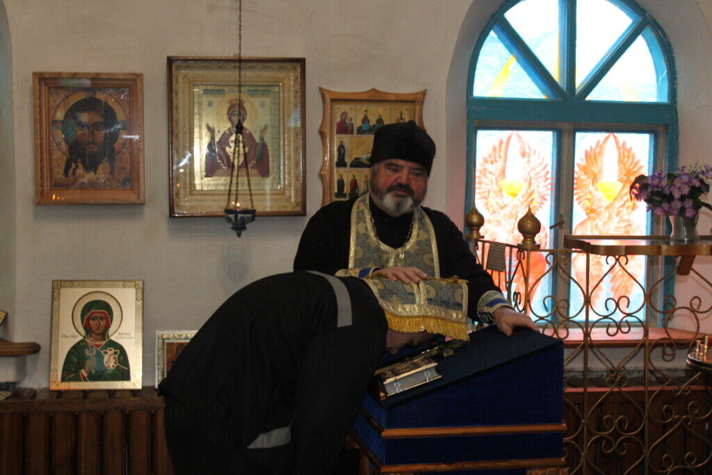 Сегодня 10 декабря 2025г., в ИК-12 г. Волжского в храме Божией Матери «Неупиваемая чаша» была совершена Божественная литургия на которой присутствовали около 25 осуждённых из них 18 исповедовались 14 причастились. После литургии прошло чаепитие и беседы на темы: терроризма, экстремизма, суицида и не только.