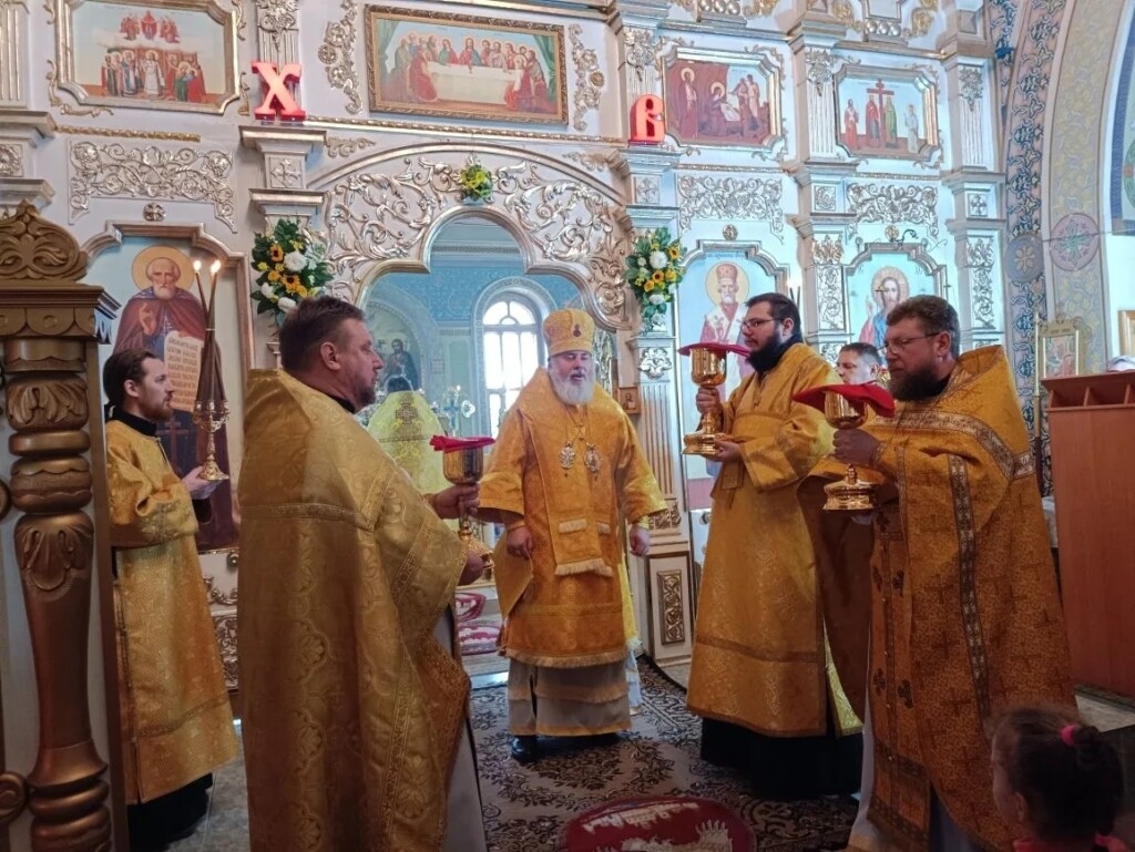 За богослужением Его Преосвященству сослужили: благочинный Волго-Ахтубинского благочиния протоиерей Димитрий Старшинин, благочинный Светлоярского благочиния протоиерей Николай Голик, настоятель Никольского храма иерей Александр Тишин, настоятель Воскресенского храма в городе Калаче-на-Дону иерей Андрей Морозов и клирик Соборного храма в г. Волжском диакон Владимир Кощеев.