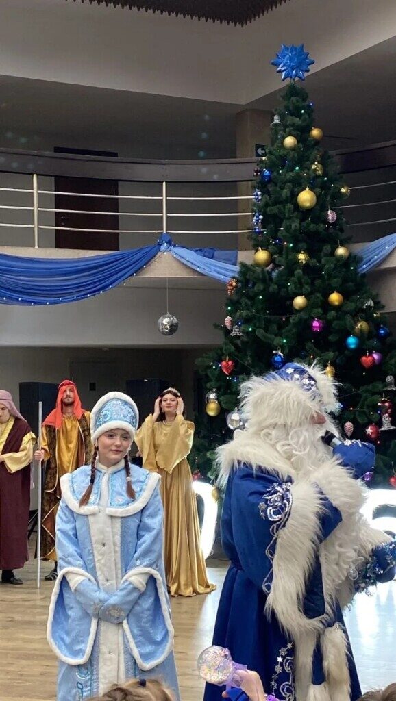 В концертном зале ЦКиИ «Октябрь» 7 января состоялась Епархиальная Рождественская ёлка. Участники ёлки, прихожане и священники волжских храмов собрались в фойе центра культуры, где и началось Рождественское сказочное действо. Ангелы -Христославы, вместе с детьми и их родителями, славили родившегося Богомладенца и смело противостояли злу, которое, конечно же, пыталось всем помешать.
