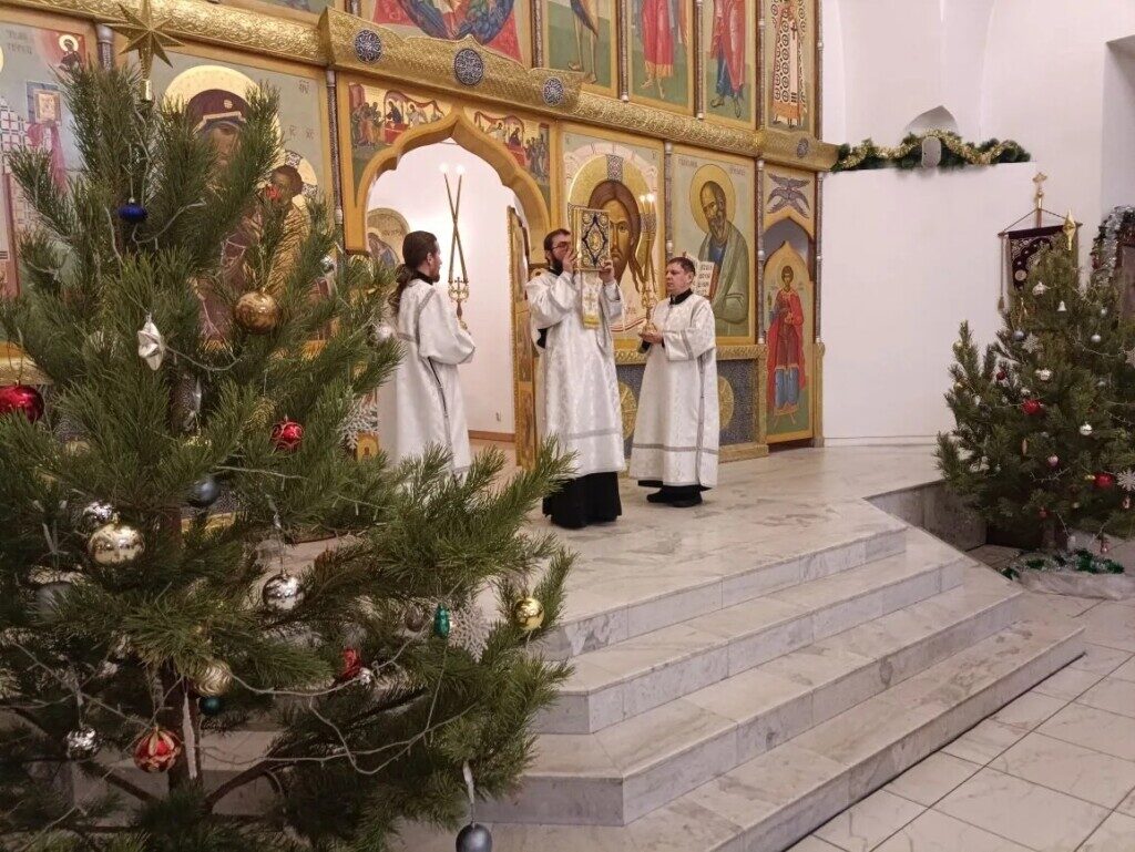 В завершение богослужения Владыка Иоанн произнёс проповедь и поздравил духовенство и прихожан храма с Рождеством Христовым.