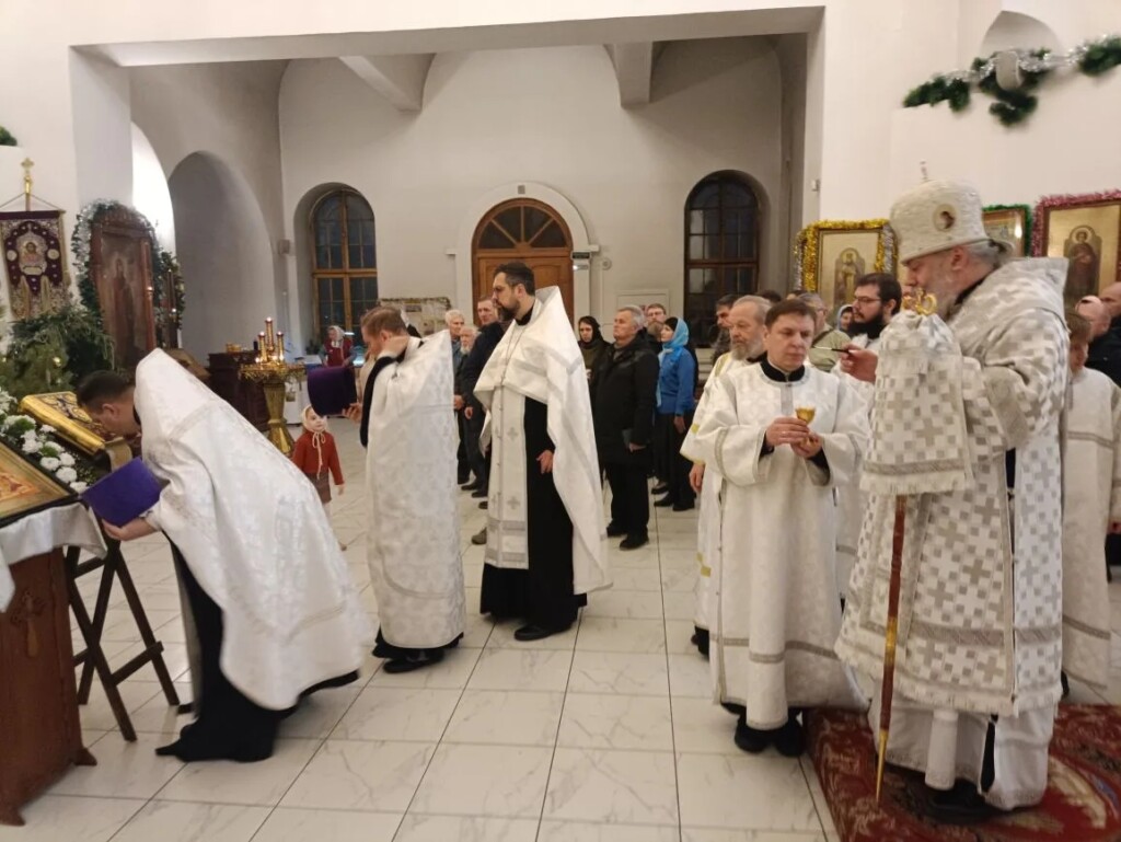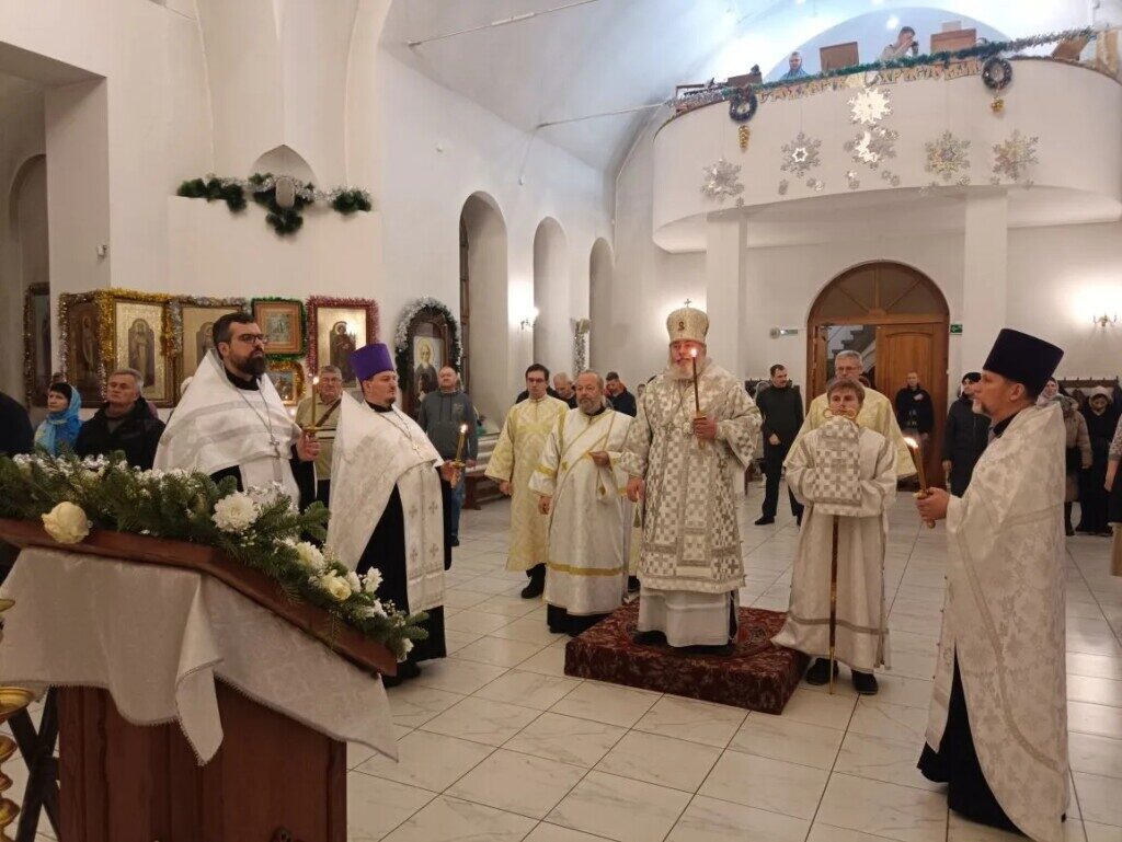В завершение богослужения Владыка Иоанн произнёс проповедь и поздравил духовенство и прихожан храма с Рождеством Христовым.