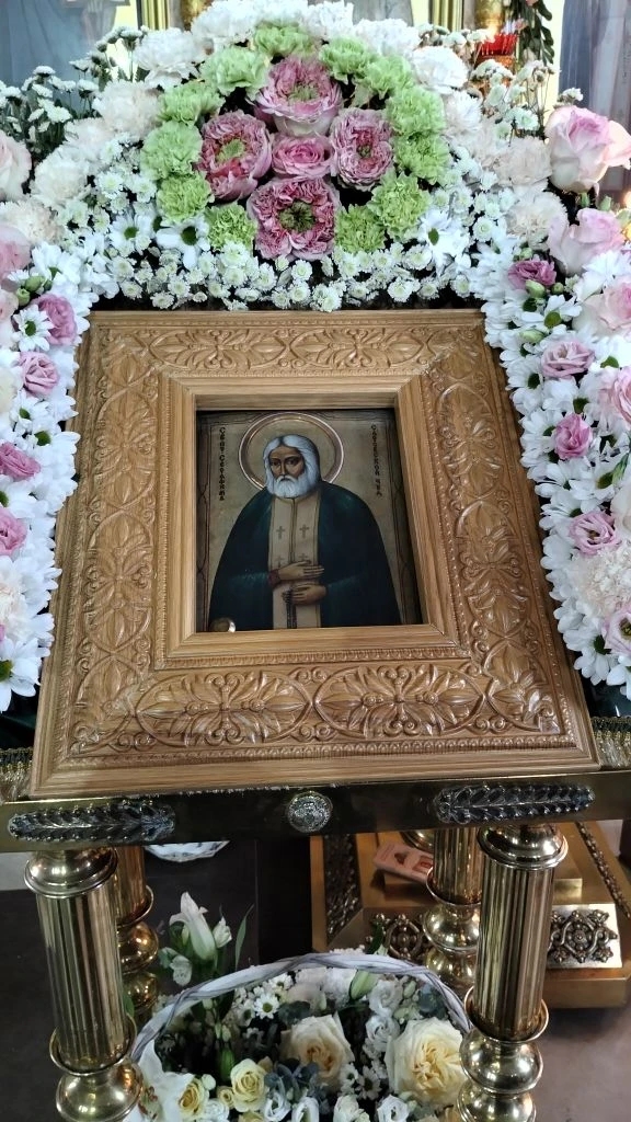 Праздник завершился славлением перед иконой Преподобного Серафима Саровского. Владыка Иоанн окропил участников богослужения святой водой, а после обратился к собравшимся со словом проповеди и поздравил отца настоятеля и всю многочисленную общину Серафимовского прихода с престольным праздником.