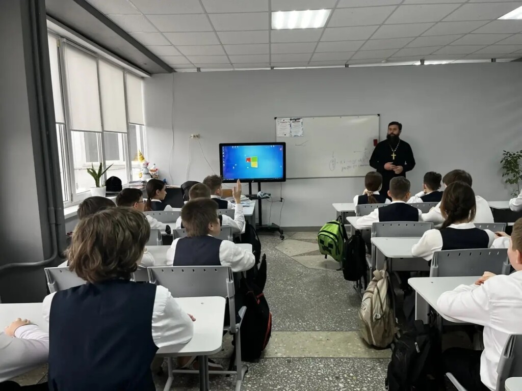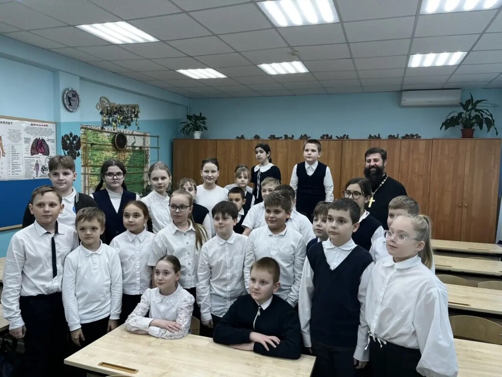 16 февраля 2026 года ученики школы №30 имени С.Р. Медведева г. Волжского встретились с настоятелем храма Александра Невского отцом Даниилом Бураковым. Ученики 4Д класса на уроке «Основы религиозных культур и светской этики» (ОРКСЭ) погрузились в тёплую и доверительную атмосферу разговора с батюшкой.