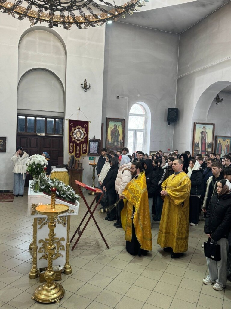 19 февраля 2026 г. в Кафедральном соборе Святителя Николая Чудотворца в Калаче-на-Дону состоялась встреча с учащимися профессионального училища №13 имени дважды Героя Социалистического Труда В. И. Штепо.