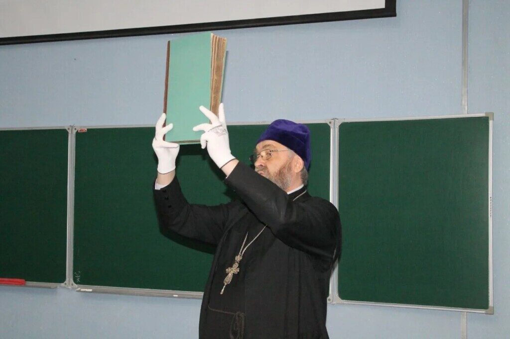 Также отец Петр пригласил студентов продолжить знакомство с редкими экземплярами в музее православной книги города Волжского.