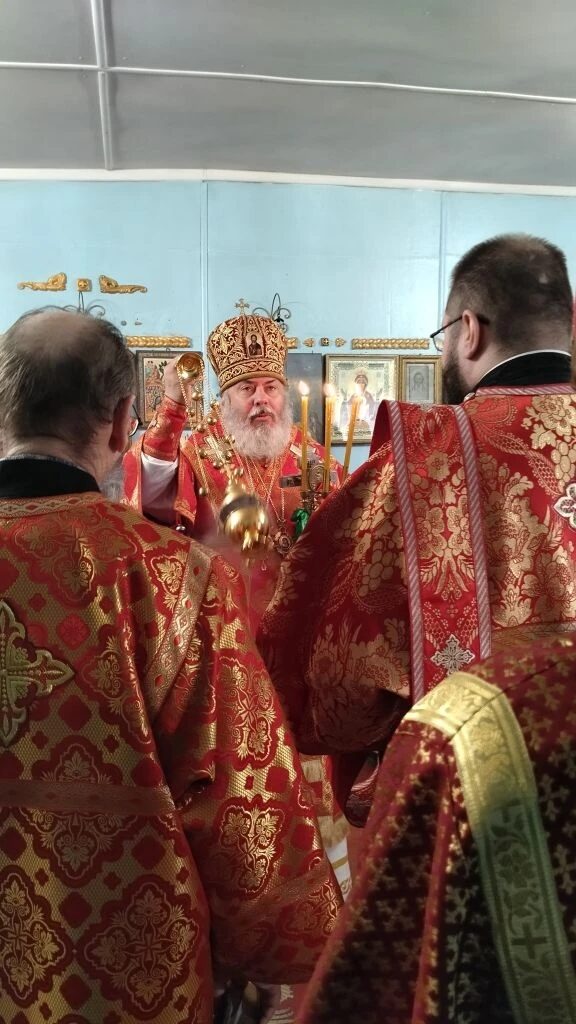 Его Преосвященству сослужили: благочинный церковного округа протоиерей Димитрий Старшинин, настоятель храма иерей Георгий Мелёшкин, диакон Владимир Кощеев.