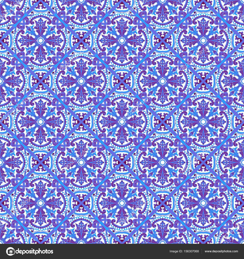 Portuguese azulejo tiles. Watercolor seamless pattern